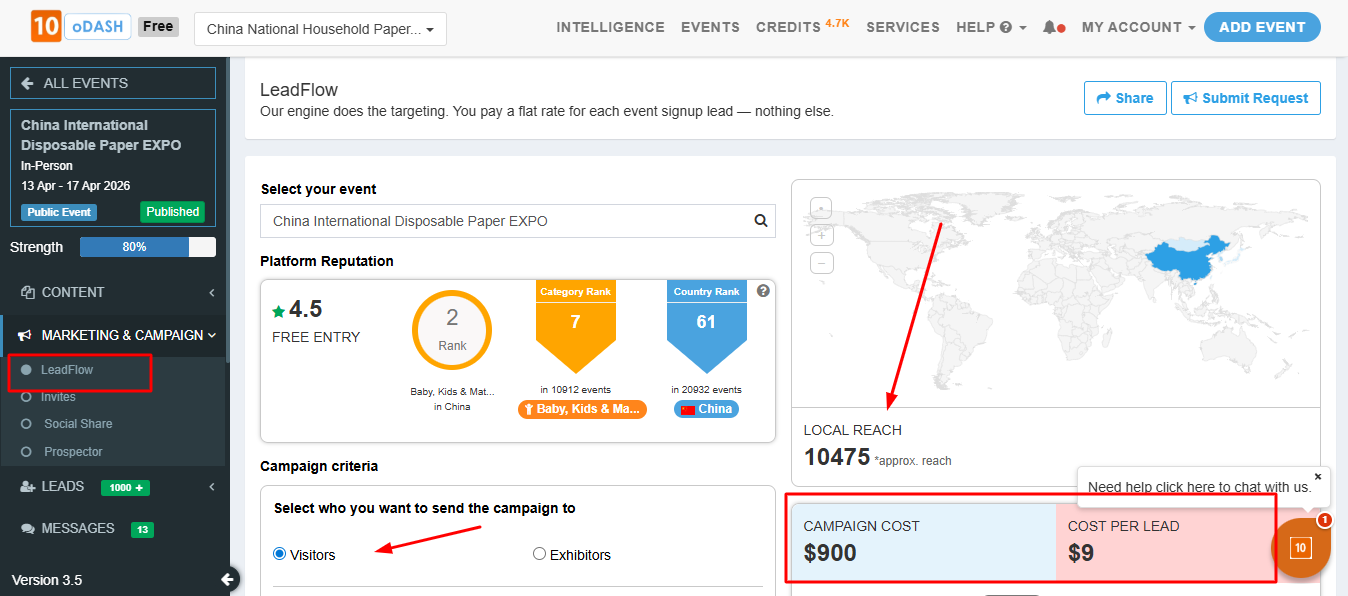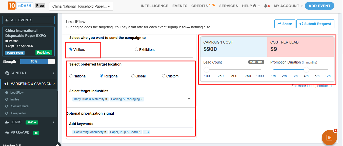 Lead Flow feature enables you to identify and target the right audience for your event by filtering users based on specific criteria such as industry and location.