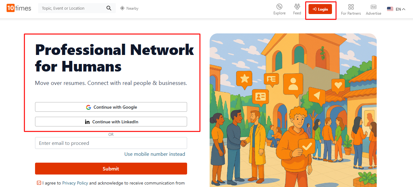 Step 2: Log in to your 10times account using your registered email ID or phone number