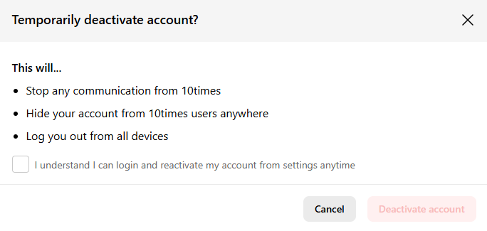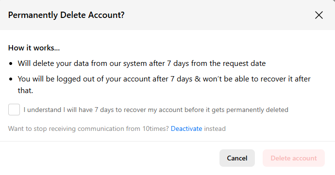 How to deactivate or delete your user account on 10times