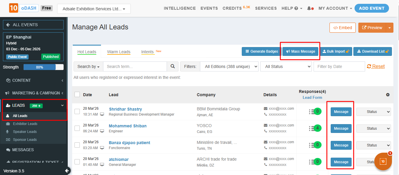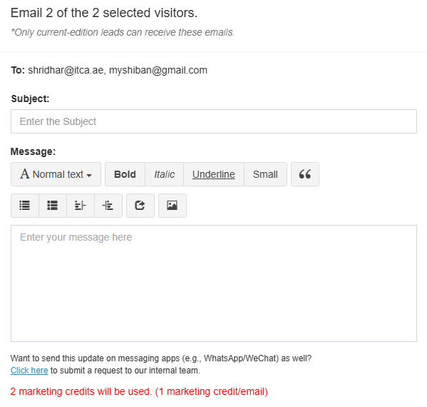 Earlier mass messages are free, now credits sre required to send mass message, for Visitors it will be 1 per user and Exhibitor 5 per user